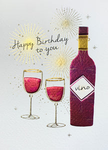 Send them happy birthday with this beautiful birthday card. This birthday card features a beautiful wine design. This birthday card for her is printed on high quality board with a stunning hot foil finish. This greeting card is designed and printed in the UK.