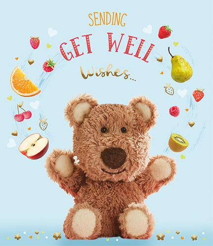 Share some warmth and support with their hard times by sending this Barley bear get well card. With a playful design and hot foil finish, it's sure to bring a smile. The full-colour insert inside is sure to lift their spirits.
