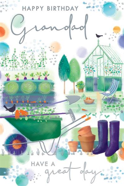 Celebrate your Grandad’s birthday with this contemporary Grandad birthday card featuring a gardening themed design. This Grandad birthday card has a hot foil finish and a full colour insert. This Grandad birthday card is produced in the UK.