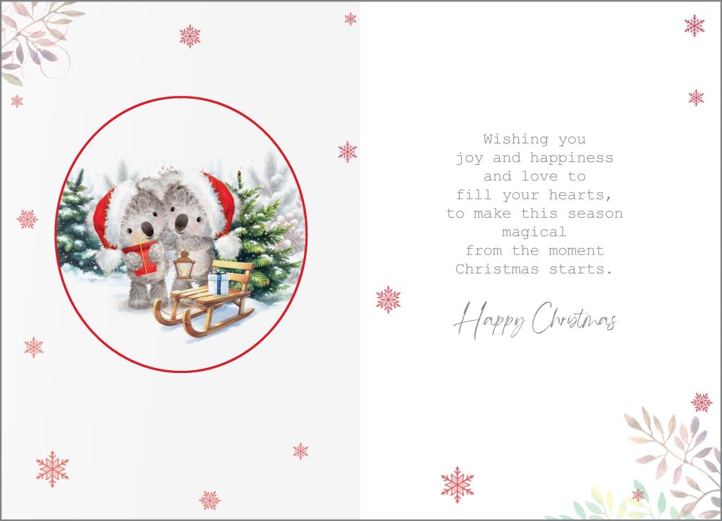 Verse reads: Wishing you joy and happiness and love to fill your hearts, to make this season magical from the e moment Christmas starts.