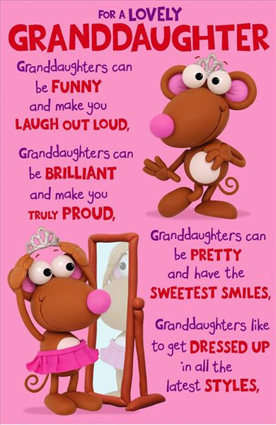 Wish your Granddaughter a happy birthday and let her know how amazing she is with this Granddaughter birthday card. This Granddaughter birthday card features a cute design and full colour insert. This greeting card is made in the UK and is produced on high quality board sourced from environmentally responsible resources.