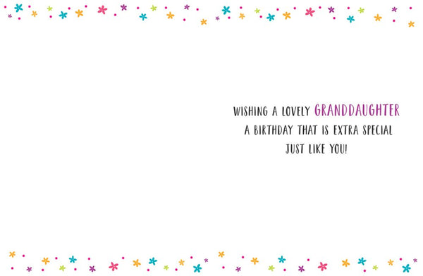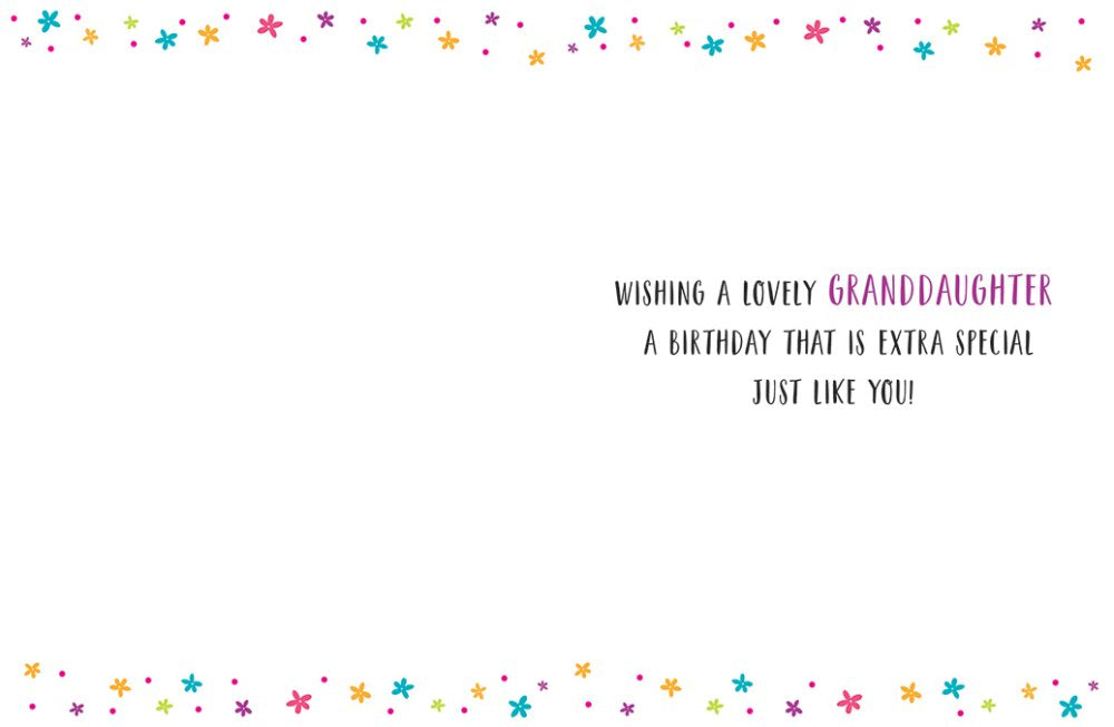 Verse inside reads: Wishing a wonderful, granddaughter a birthday that is extra special, just like you!