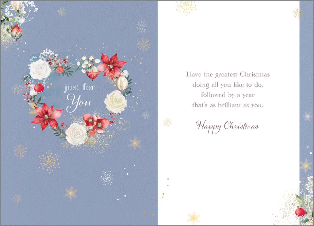 Verse reads: Have the greatest Christmas doing all you like to do, followed by a year that’s as brilliant as you. Happy Christmas