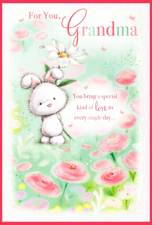 Wish your Granddaughter a wonderful birthday with this cute grandma birthday card. This grandma birthday card features a cute rabbit and flowers design. This greeting card to celebrate your grandma’s birthday has a sparkling glitter finish and full colour print inside.
