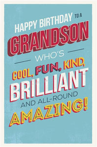 Wish your Grandson a happy birthday with this funny Grandson birthday card. This Grandson birthday card features a funny design with full colour print inside. This Grandson birthday card is made in the UK and is produced on high quality board sourced from environmentally responsible resources.