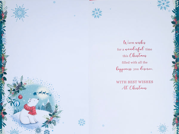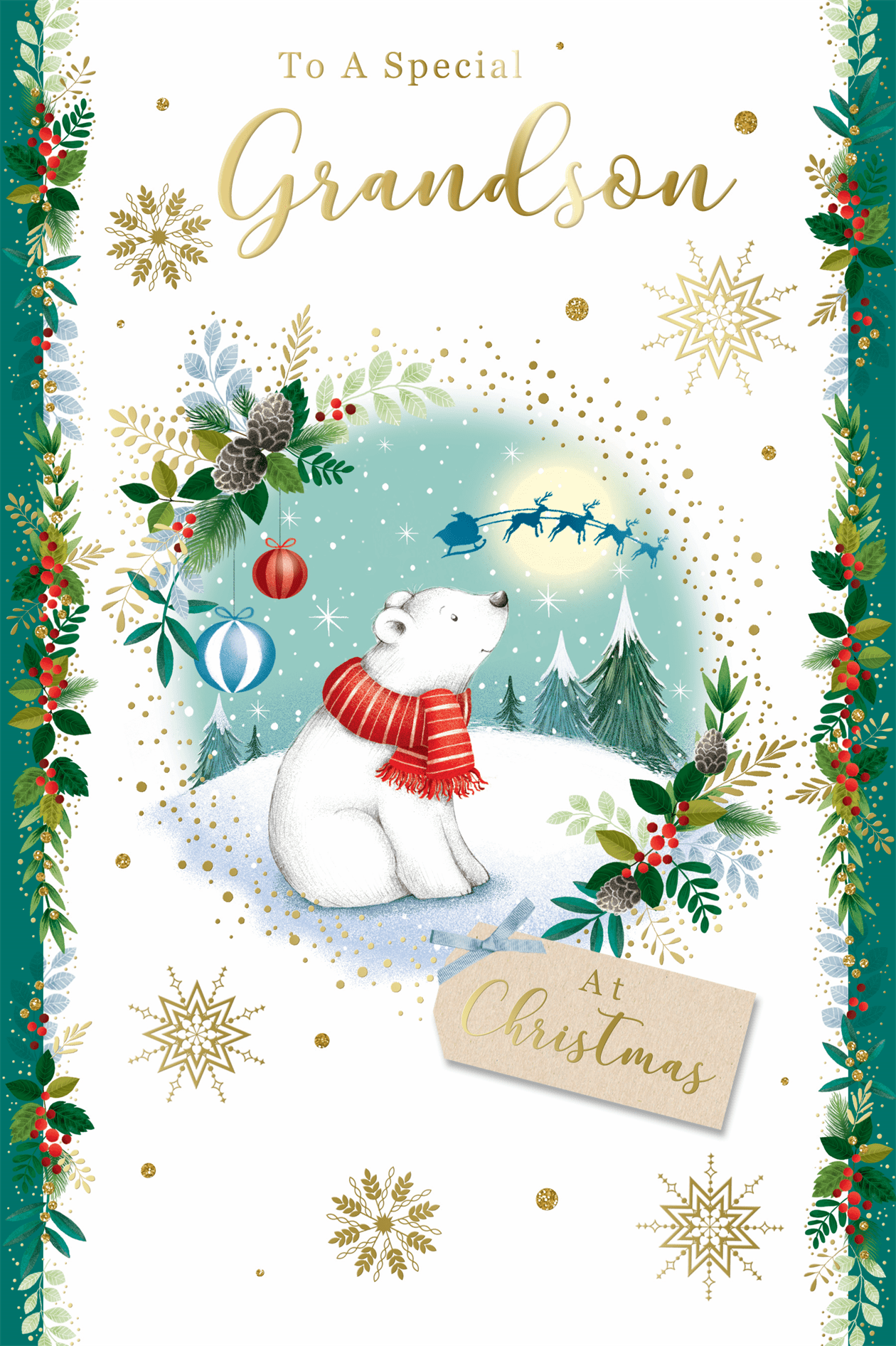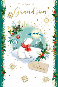 Wish your Grandson a lovely Christmas and let him know how much he is loved with this cute Grandson Christmas card. This Grandson Xmas card features a cute polar bear design. Inside this cute Grandson Christmas card is a full colour insert. This Grandson Christmas card features a hot foil finish and is designed in the UK.