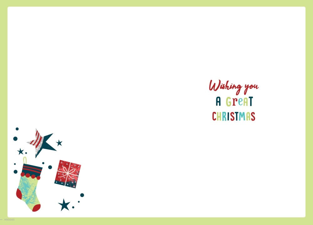 This Grandson Christmas card offers a modern take on a festive seasonal greeting. Hot foil accents provide a vibrant, contemporary look, and the card is designed in the UK with a full-colour insert included.