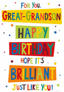 Verse reads: Wishing a special great grandson a really fantastic birthday.