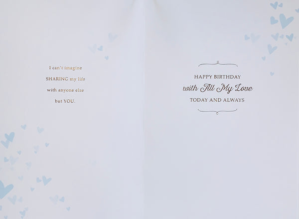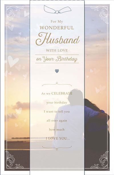 Send loving birthday wishes to your Husband with this beautiful Husband birthday card. This Husband birthday card features a hot foil finish and is given a luxury feel with its multiple decorative attachments. This Husband birthday card has hot foil print inside with a multi page insert.