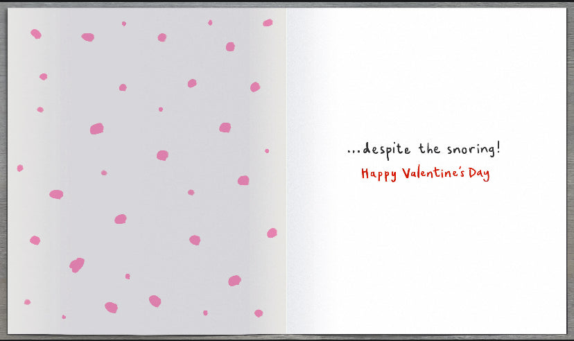 Verse reads: To my gorgeous husband on Valentine’s Day. I just wanted to let you know that I love you…despite the snoring. Happy Valentine’s Day.