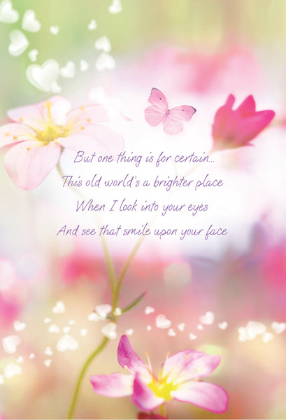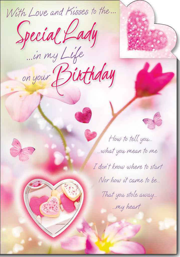 Send loving birthday wishes to the special lady in your life with this Special lady in my life birthday card. This birthday card for the special lady in my life features a bright floral photographic design with a glitter finish and 3D pop out design. This greeting card has a multi page full colour insert with a long verse. This special lady in my life birthday card has a long verse with loving words to tell the one you love how much they mean to you. This greeting card is designed and printed in the UK