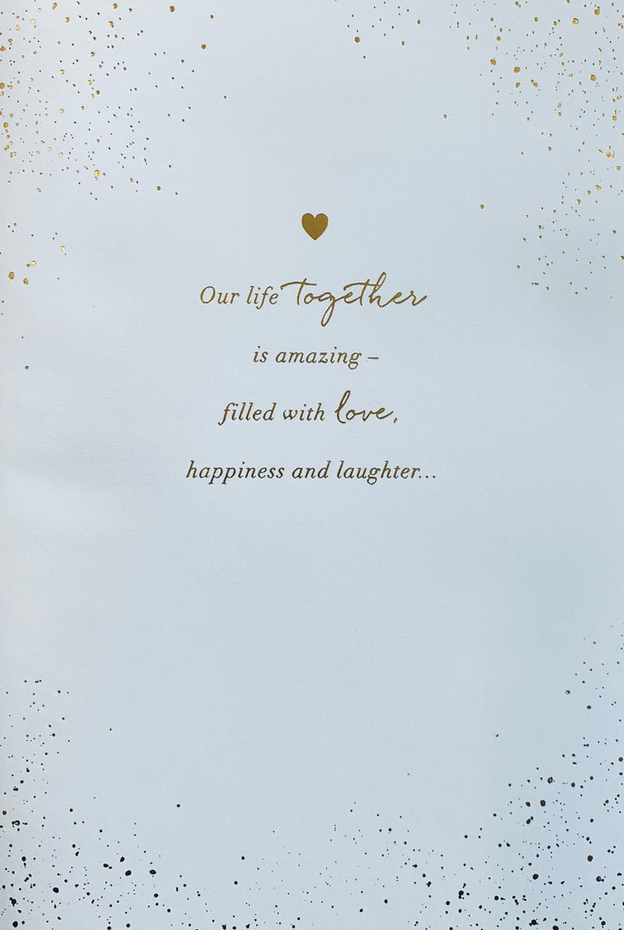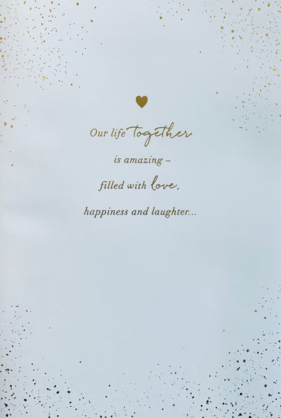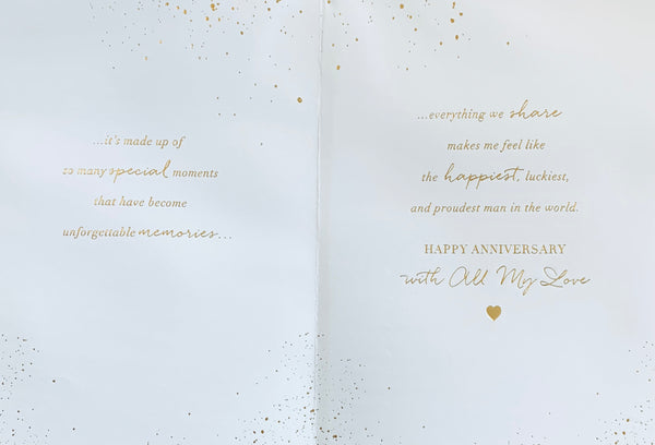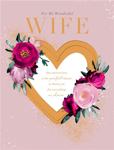 Send loving anniversary wishes to your wonderful Wife with this luxury Wife wedding anniversary card. This Wife anniversary card features a beautiful floral design with hot foil finish and large decorative attachment. This Wife anniversary greeting card has a multi page full colour insert with a long verse.