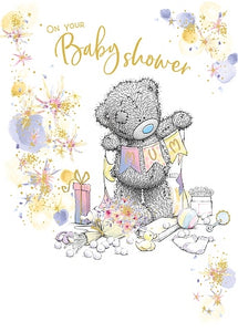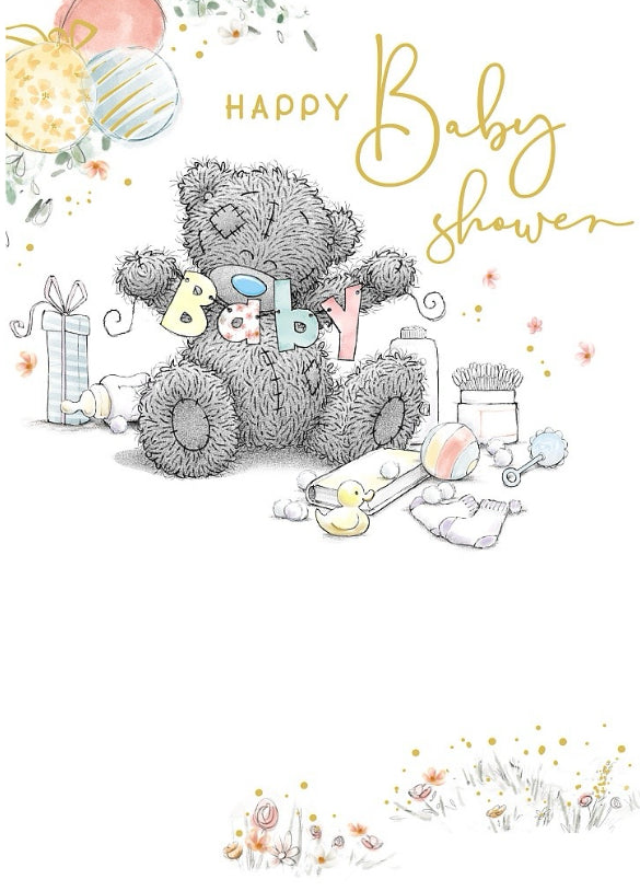 Wish them love on this joyous occasion with this adorable me to you baby shower card. Featuring a charming tatty teddy design, this card is printed on superior quality board and further highlighted with a golden foil finish and vibrant colours inside.