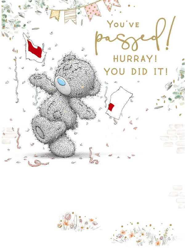 Send your congratulations as they pass their driving test and head out on the open roads. This driving test congratulations card features a cute me to you tatty teddy design with golden foil finish. Full colour print inside.