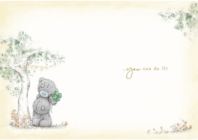 Wish them well with this me to you good luck card. Tatty teddy is featured holding a lucky four leaf clover, and the card is embellished with bright gold foil finish. Printed on high-quality stock board, and complete with full-colour printing inside.