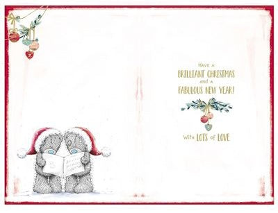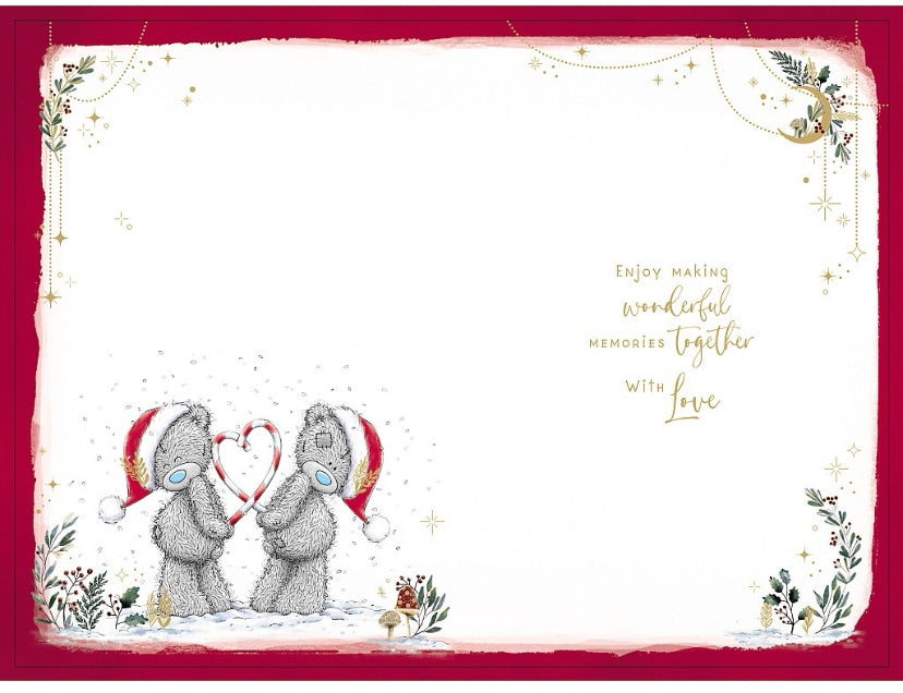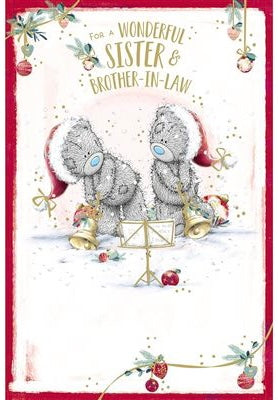 Cute me to you Brother and sister-in-law Christmas card. Wish your Brother and sister-in-law a fantastic Christmas with this lovely Me to you Brother and sister-in-law Christmas card. This lovely Me to you Brother and sister-in-law xmas card features a cute tatty teddy couple design with a golden foil finish printed on high quality board. Full colour insert.