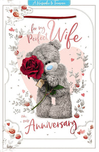 3D lenticular Cute me to you wife anniversary card. Wish your wife a wonderful anniversary with this lovely Me to you wife anniversary card. This lovely Me to you wife anniversary card features an eye catching 3D lenticular technology giving an amazing 3D photo depth finish. Full colour print inside. Short verse. Printed on card sourced from environmentally responsible sources.