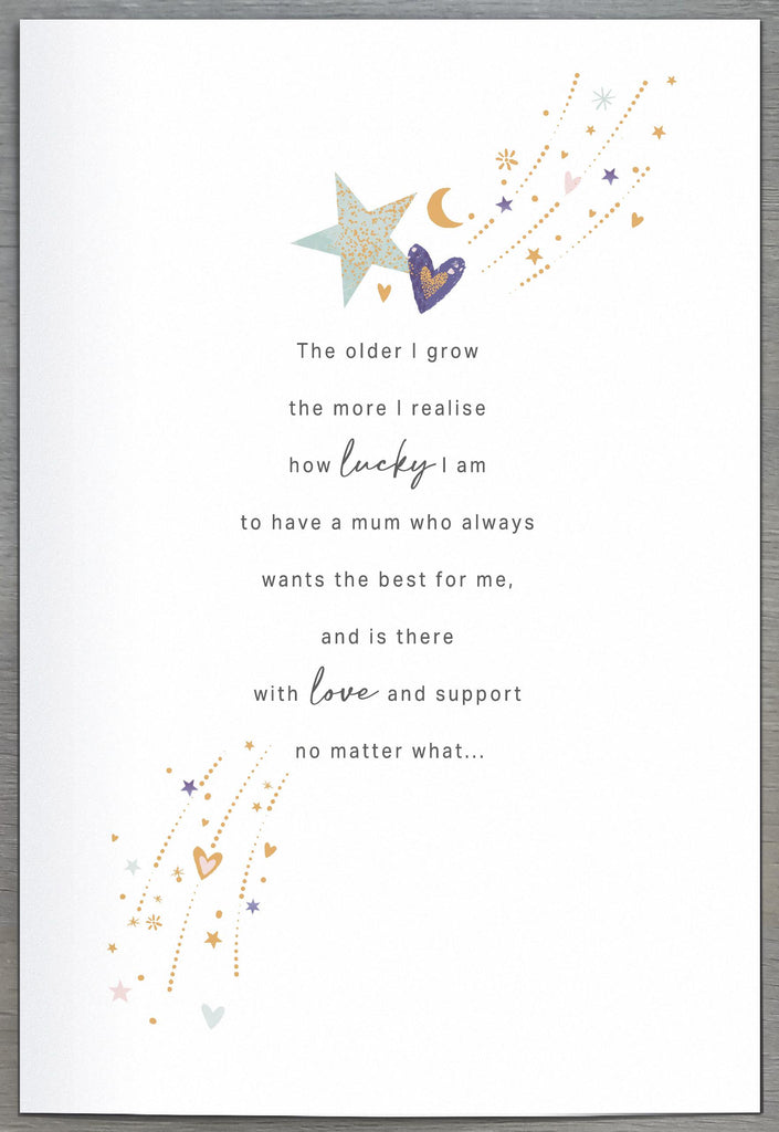 Luxury Mum birthday card - stars and hearts with sentimental verse