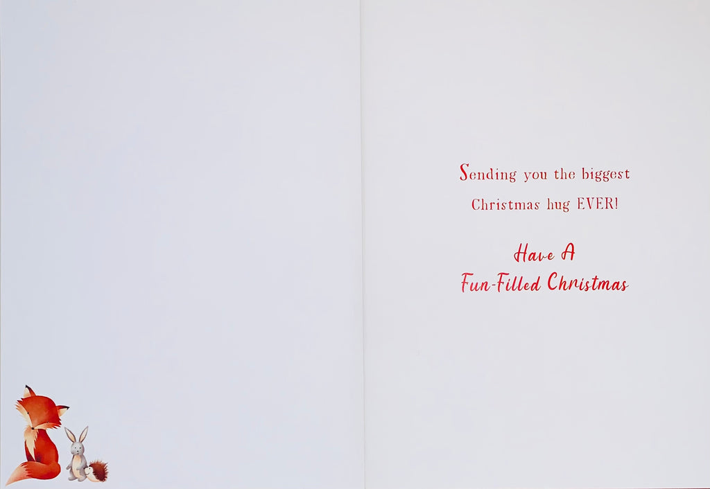 Verse inside reads: Sending you the biggest Christmas hug ever! Have a fun-filled Christmas