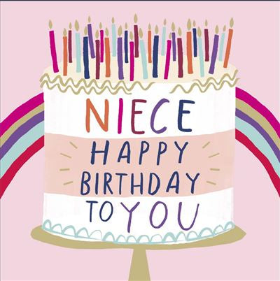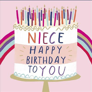 Wish your Niece a wonderful birthday with this lovely Niece birthday card. This Niece birthday card features a bold bright birthday cake design and is printed on high quality board with a beautiful hot foil finish. This greeting card is made from paper sourced from environmentally friendly resources.