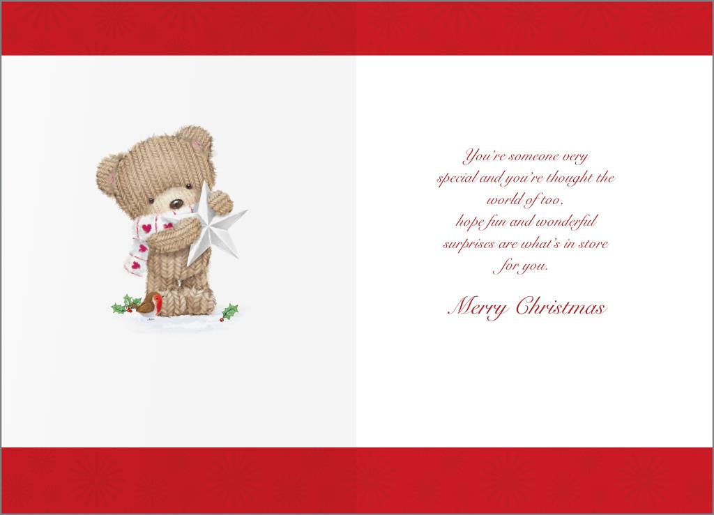 Verse reads: You’re someone very special and you’re thought the world off too, hope fun and wonderful surprises are what’s in store for you. Merry Christmas.