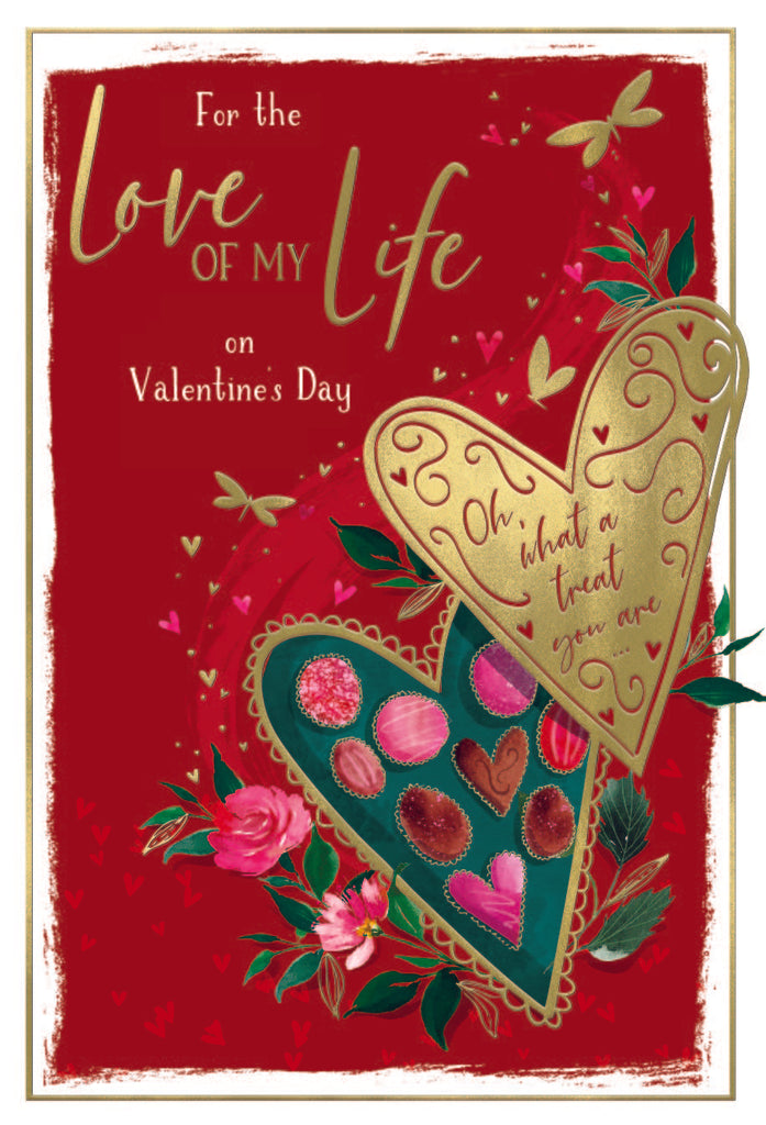 Send your loving wishes to the One you love this Valentine’s Day and let them know how special they are with this traditional love of my life Valentine’s Day card. This One I love Valentine’s Day card features a traditional roses and chocolates design and is printed on high quality board with a vibrant golden foil finish and full colour insert. This greeting card is designed and printed in the UK.