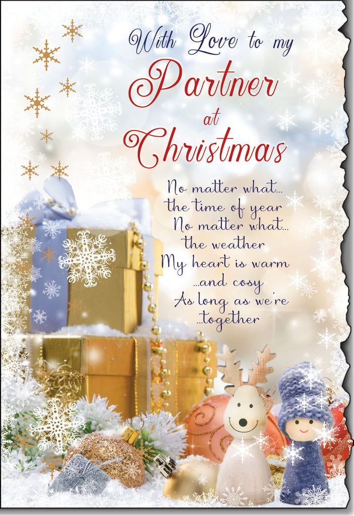 Wish your Partner a wonderful Christmas and let them know how special they are with this beautiful Partner Christmas card. This Partner Christmas card features an eye catching design with a sparkling glitter finish and a full colour insert. This Partner Christmas card is printed on high quality board sourced from environmentally responsible sources. This greeting card is designed in the UK