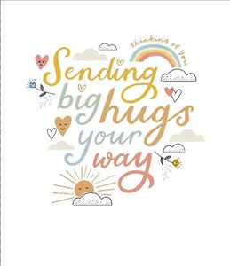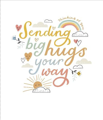 This beautiful sending hugs card is the perfect card to send through the post to a friend or family member to let them know you are thinking of them. There’s nothing more lovely than getting a card out of the blue. This sending hugs card features a beautiful rainbow design and is printed on high quality board with a lovely hot foil finish. This sending hugs card is designed and printed in the UK and is printed on board sourced from environmentally responsible sources.