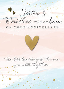 Celebrate your Sister and Brother-in-laws anniversary with this contemporary Sister and Brother-in-law anniversary card. This Sister and Brother-in-law anniversary card has multiple decorative attachments and a soft pastel colour scheme to give a modern contemporary feel to this Sister and Brother-in-law anniversary card.