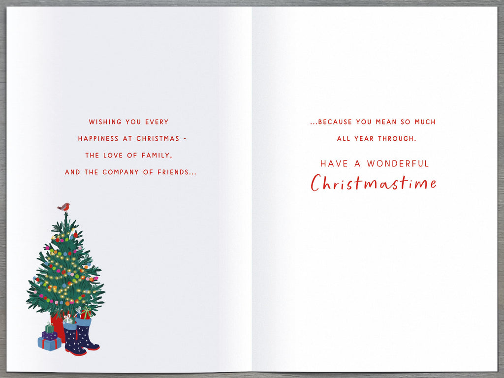 Verse reads: Wishing you Every happiness at Christmas – the love of family, and the company of friends. Because you mean so much all year through. Have a wonderful Christmas time.