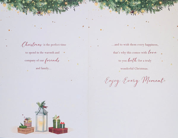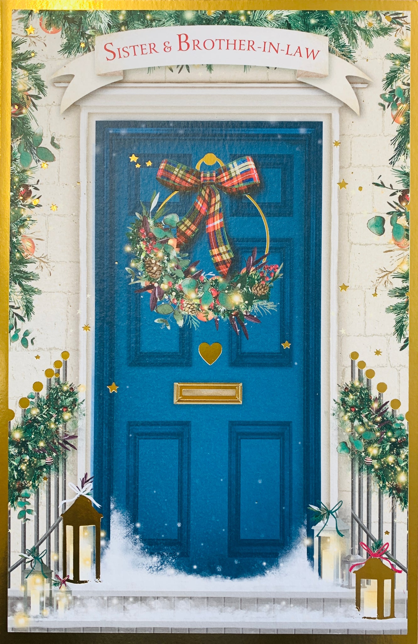 Let them know they are being thought about at Christmas with this beautiful Sister and Brother-in-law Christmas card. This traditional Sister and Brother-in-law Christmas card features a classic Christmas home design. This Sister and Brother-in-law Christmas card is printed on high quality board with a golden foil finish with a full colour insert inside. This Sister and Brother-in-law Christmas card is designed and printed in the UK.