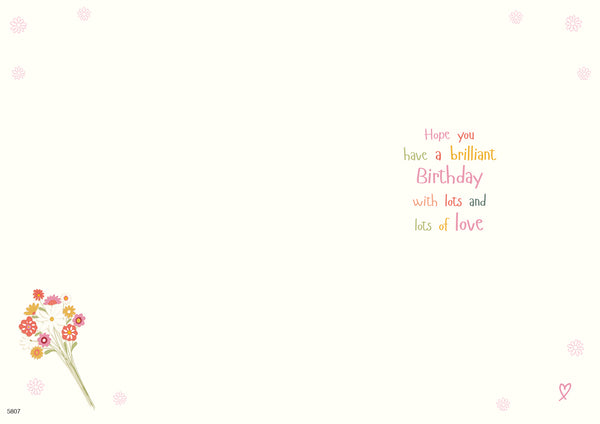 Let your Sister know she is loved with this cute Hun Bun Sister birthday card. This cute Sister birthday card features Hun Bun holding a bouquet of flowers. This greeting card is printed on high quality board with a hot foil finish and full colour insert. This Sister birthday card is designed and printed in the UK.
