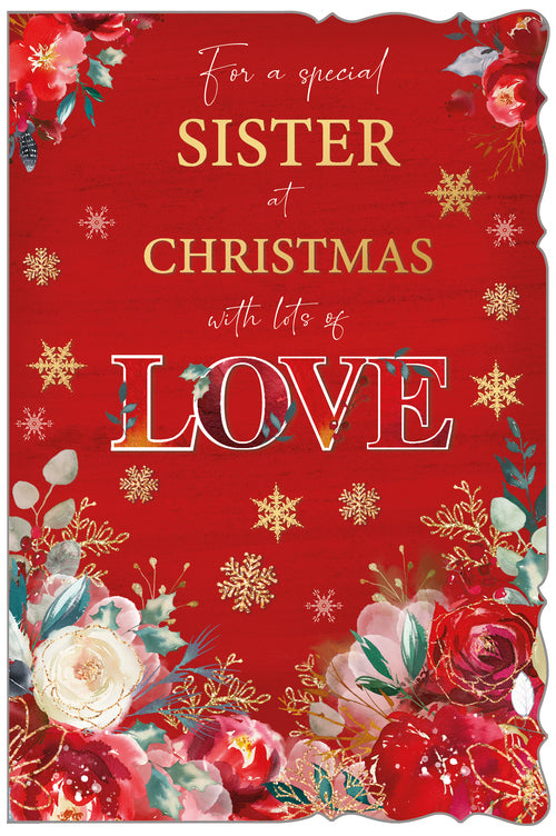 Wish your Sister a very merry Christmas with this festive Sister Christmas card. This traditional Sister Christmas card features a classical Christmas reindeer design. This Sister Christmas card has a golden foil finish. This greeting card for Sister has a full colour insert and is designed in the UK.