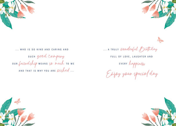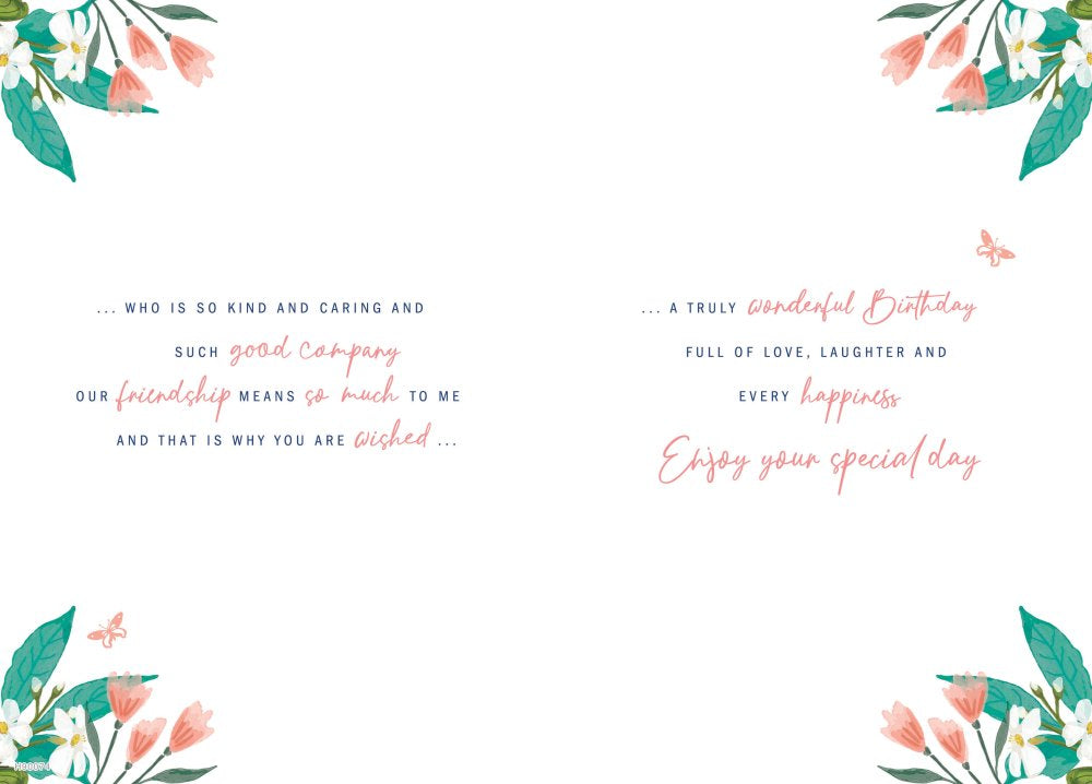 Wish your Special friend a special happy birthday wish with this traditional friend birthday card. This special Friend birthday card features a pretty floral design. This greeting card has a hot foil finish with a full colour insert. This special friend birthday card is printed in the UK. Short verse.