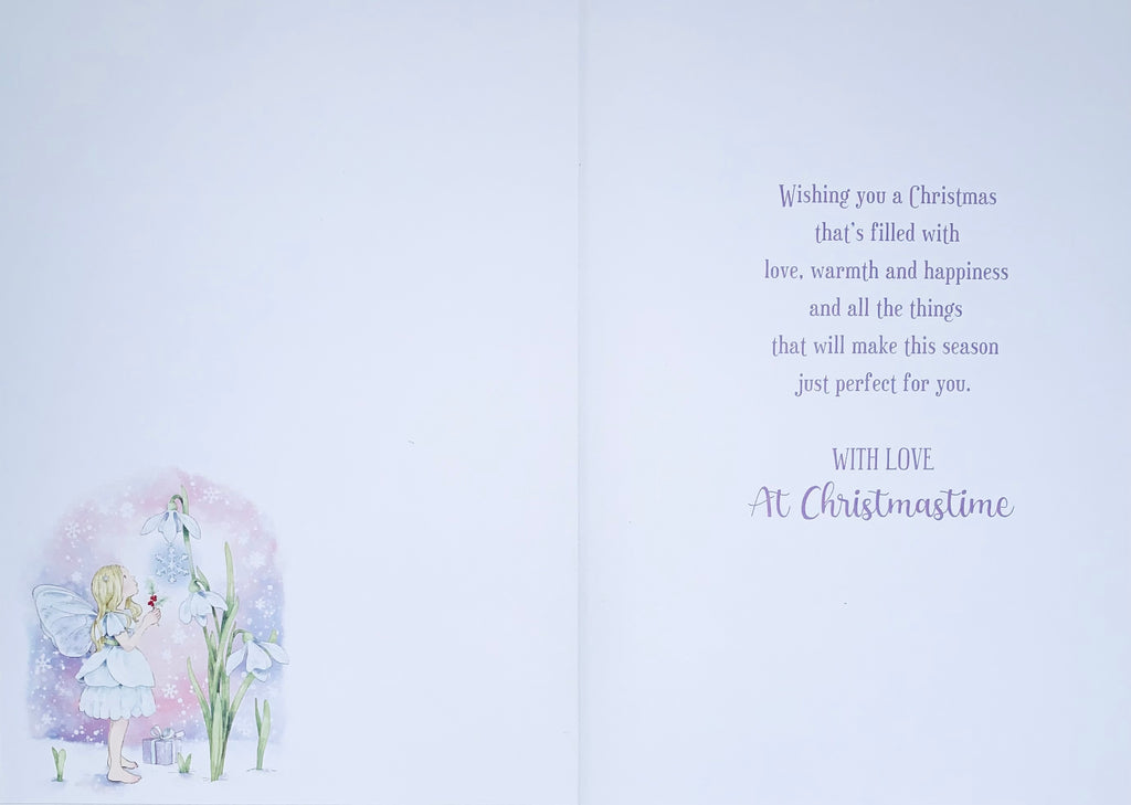 Send a special little girl, special Christmas wishes this Christmas with this cute special little girl Christmas card. This greeting card features an adorable Christmas fairy design and is printed on high-quality board with a silver foil finish and full-colour insert. This card is designed and printed in the UK on board sourced from environmentally responsible resources.
