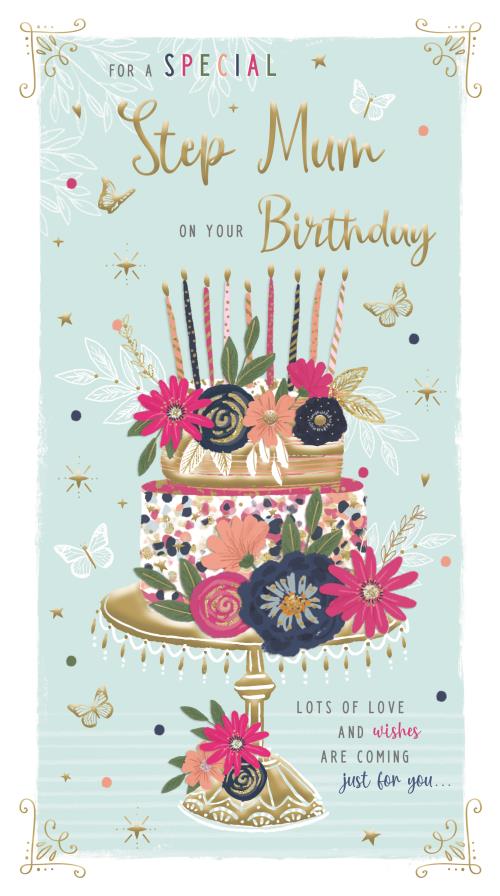 Step-Mum birthday card- beautiful cake