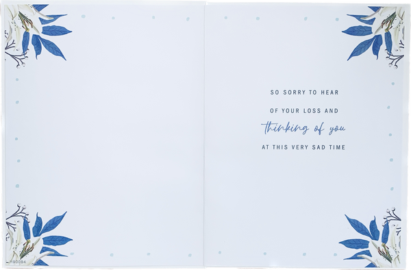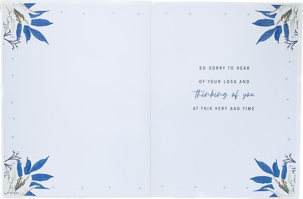 Send your caring thoughts with this beautiful sympathy card. This sympathy card features a traditional design with a hot foil finish. This sympathy card has a full colour insert with a short meaningful verse to share your caring thoughts. This greeting card is designed and printed in the UK