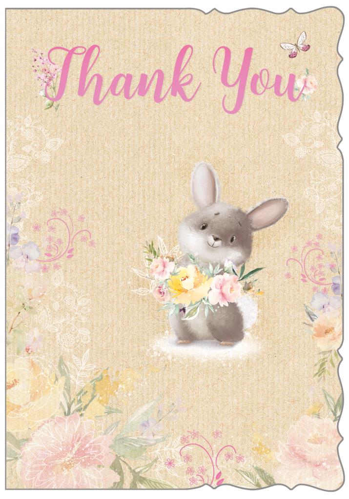 Let them know you are thankful with this cute thank you card. This thank you card features a cute rabbit with a sparkling purple foil finish and a full colour insert. This greeting card is designed in the UK.