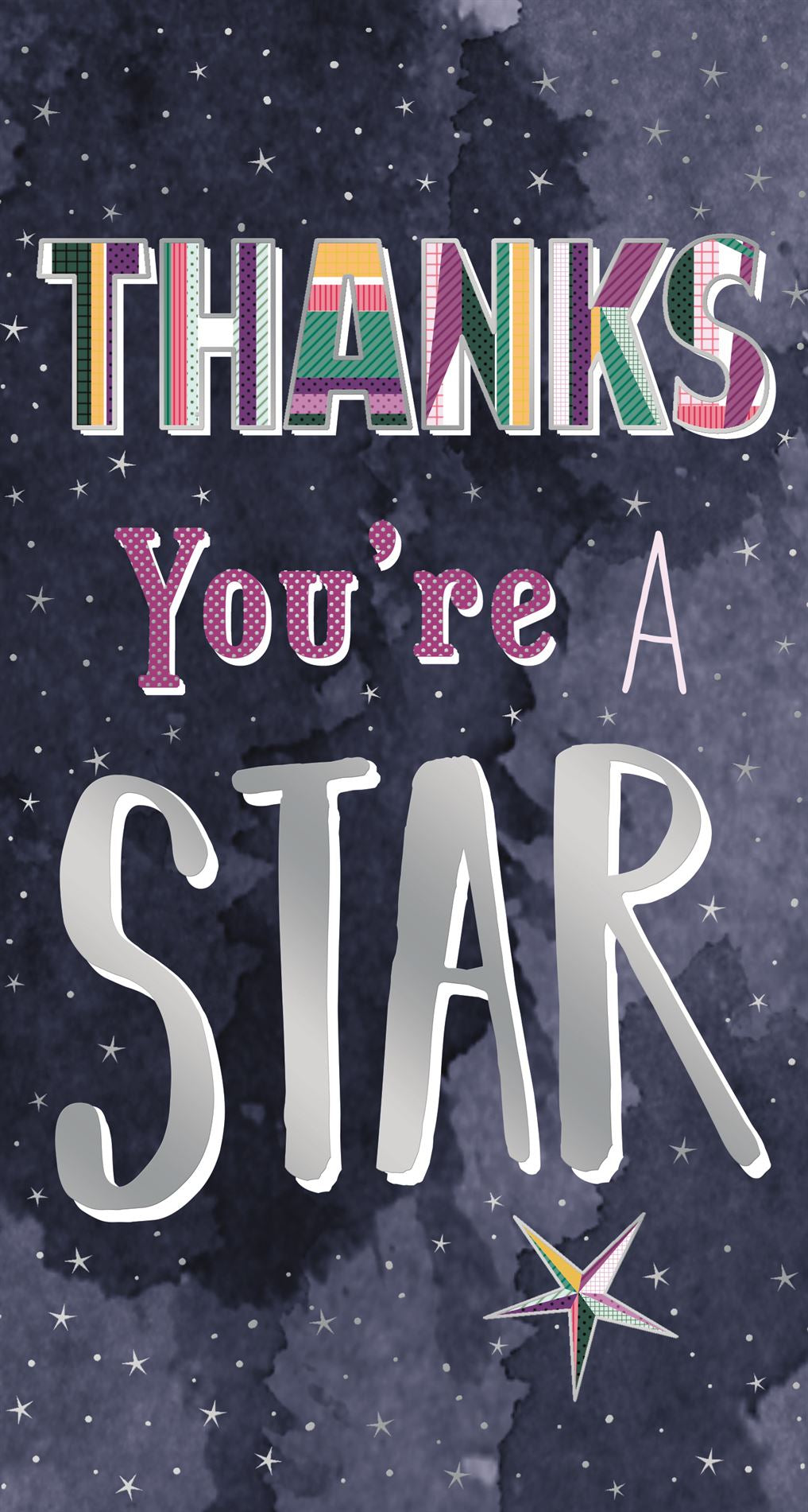 Let them know they're a total star with this sassy thank you card! Show your appreciation with this modern card featuring a contemporary star design with a hot foil finish. Plus, it's made in the UK with lots of love.