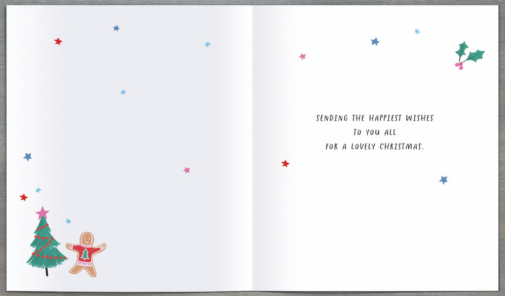 Wish them all a wonderful Christmas with this lovely to all of you Christmas card. This to all of you Xmas card features a bright and colourful festive design. This Christmas card features a shimmering silver foil finish.