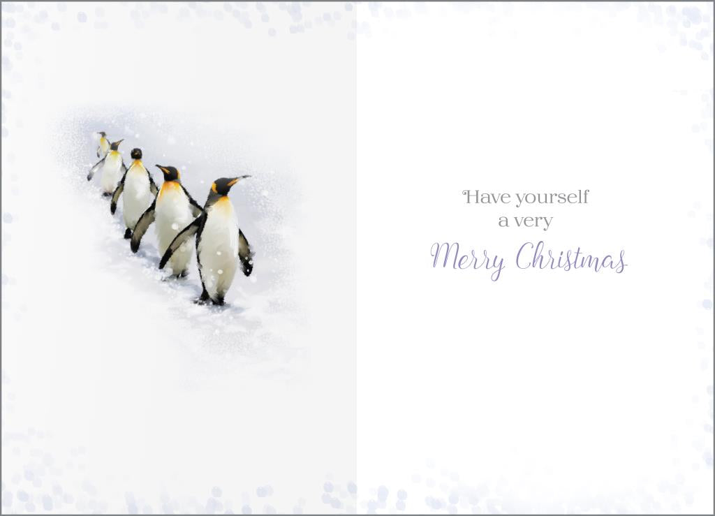 Wish them all a wonderful Christmas with this to all the family Christmas card. This to all the family Christmas card features a cute penguins photograph design with a golden foil finish and full colour print inside. This greeting card is designed in the UK.