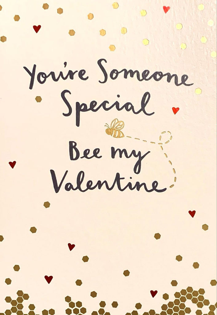 Send your someone special happy loving Valentine’s Day wishes with this cute Valentine’s Day card. This cute Valentine card features a contemporary cute bee themed design. This greeting card is printed on high quality board with a gold and red foil finish.
