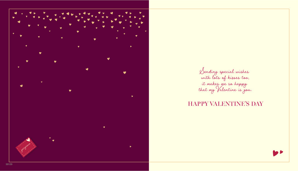 Verse reads: Sending special wishes with lots of kisses too, it makes me so happy that my valentine is you. Happy Valentine’s Day.