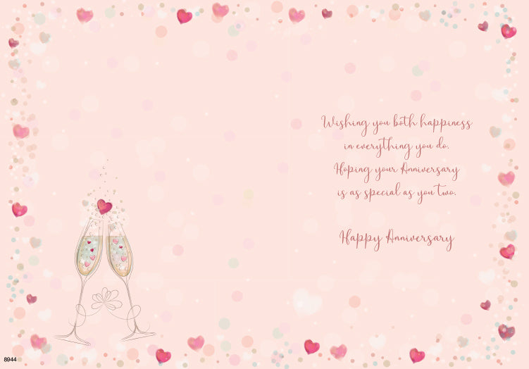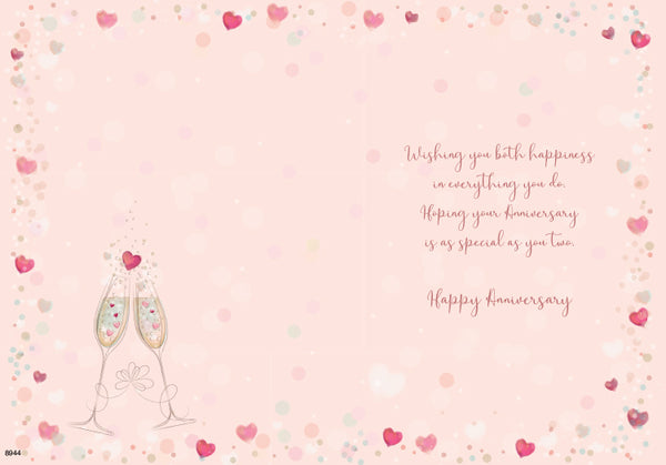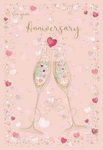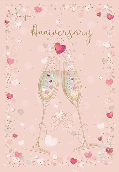 Wedding anniversary card - champagne glasses and hearts