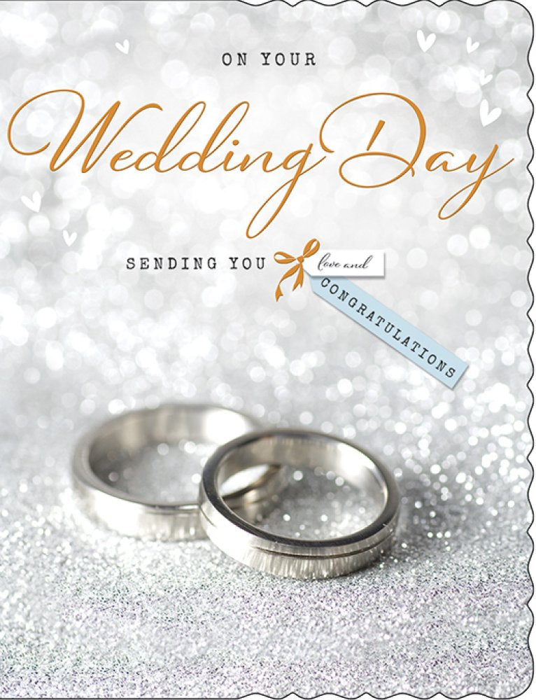 Send your best wishes and and congratulate them on theirs very special day with this wedding day car This wedding day card feature a photographic wedding ring design. This greeting cardhas a hot foil finish and has full colour print inside.