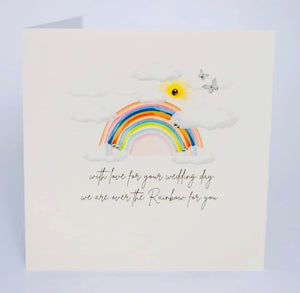 Send a luxury your wedding day card to mark their special day. This wedding day card is printed on Five Dollar Shake 'white gold' shimmering blush board and brings these beautiful rainbow coloured illustrations to life! All lovingly and delicately hand embellished with a generous sprinkling of genuine crystals. Hand finished in the UK. Blank inside.