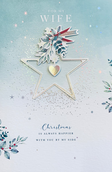 Wife Christmas card - Christmas star and heart