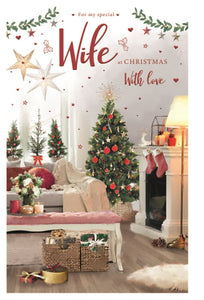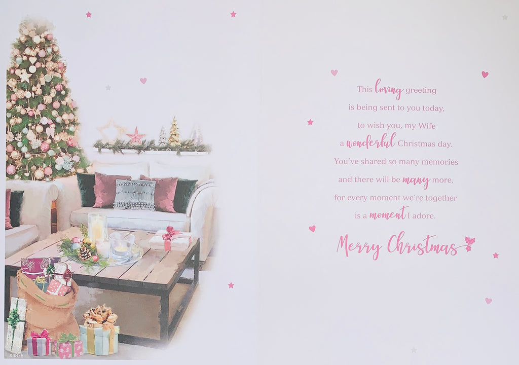 Send your wife some festive cheer this Christmas with this gorgeous card! Featuring a delightful winter walk design with shimmering golden foil and glitter finish, this Wife Christmas Card is sure to bring a smile to her face. Includes a full-colour insert and heartfelt verse to make her Christmas extra special.