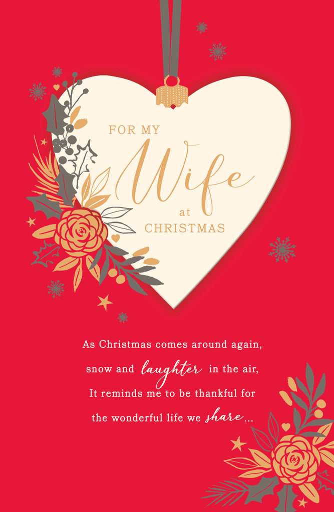 Make your amazing wife's Christmas sparkle with this beautiful Wife Christmas card! Featuring a romantic festive hearts and flowers design with sparkling silver and gold foil accents, this Wife Christmas Card is the perfect way to send her your love and wishes. Inside, it includes a full-colour insert.