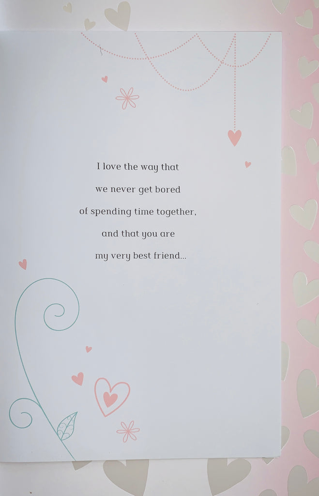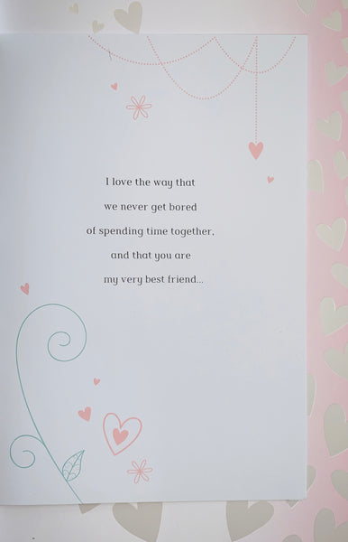 Let your beautiful Wife know how much she is loved and appreciated through your 40 years of marriage with this lovely Wife Ruby anniversary card. This Wife Ruby anniversary card has a lovely contemporary design with multiple decorative attachments and a long sentimental verse. This Wife Ruby anniversary card is printed on high quality board and is designed in the UK. Inside this Wife Ruby anniversary card is a full colour multi page insert with a long verse.
